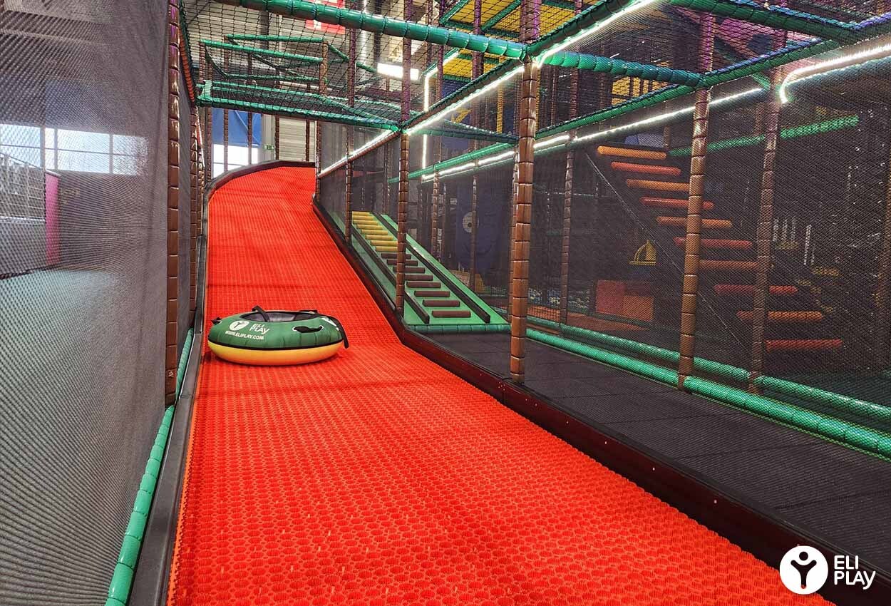Le Donut Glider est une piste de glisse façon luge, mais à bord d’un beignet géant! ELI Play a adapté la version outdoor, qu’on trouve dans certaines stations de ski, pour une utilisation en parc couvert.