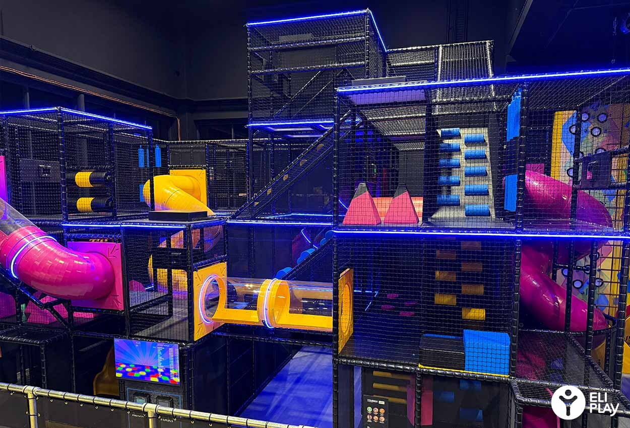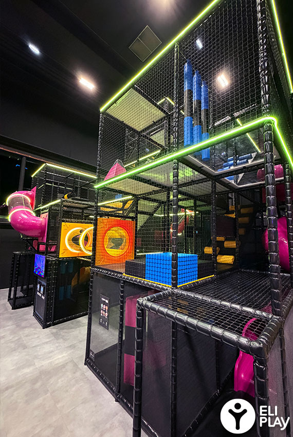 ELI Play fabrique les différentes arènes et modules de HiT iT! Les arènes peuvent être de taille petite, moyenne ou grande. ( Small, Medium and Large). En fonction de votre localisation et bâtiment nous pouvons déterminer quelle arène est la plus adaptée. L’arène est composée de différents modules, chacun avec des défis différents. Les joueurs doivent utiliser différentes techniques pour gagner le plus de points possibles. Par exemple escalader le volcan, glisser du toboggan, grimper sur la Power Tower traverser des parcours de cordes, passer des obstacles du Cargo Crisis.