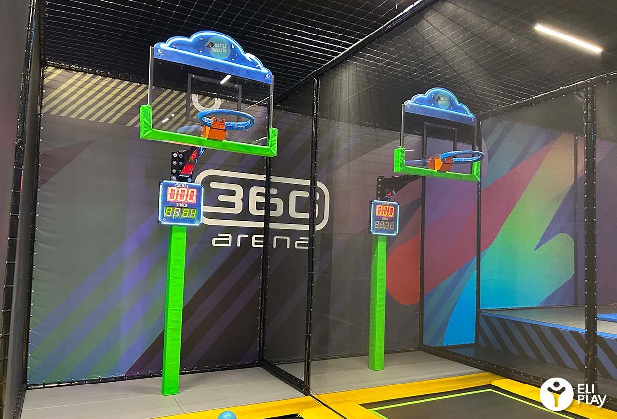 En raison de l’utilisation d’un ballon, la Dunk Zone nécessite un espace dédié dans le parc à trampolines.